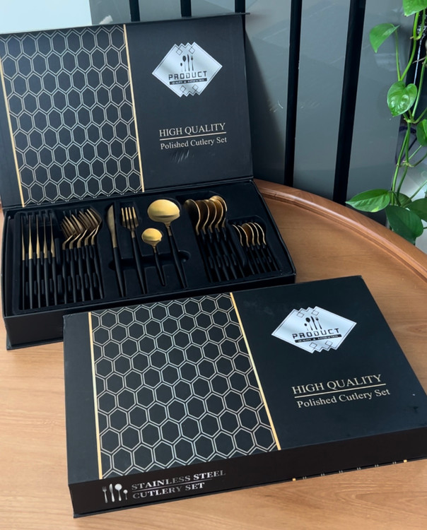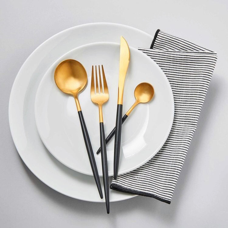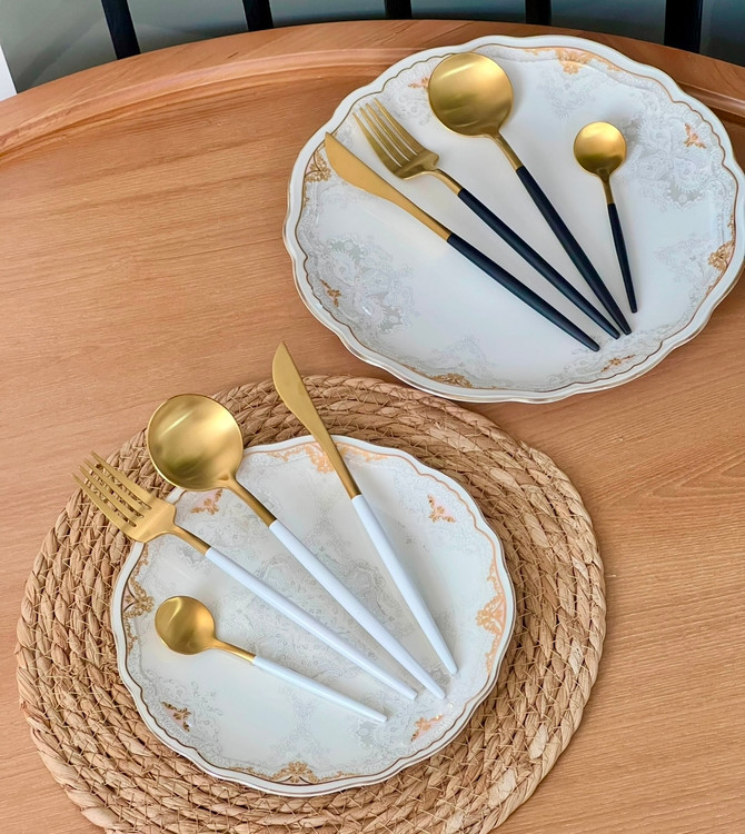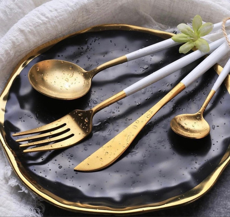 رنگ طلایی مات و دسته لعاب خورده سفید و مشکی