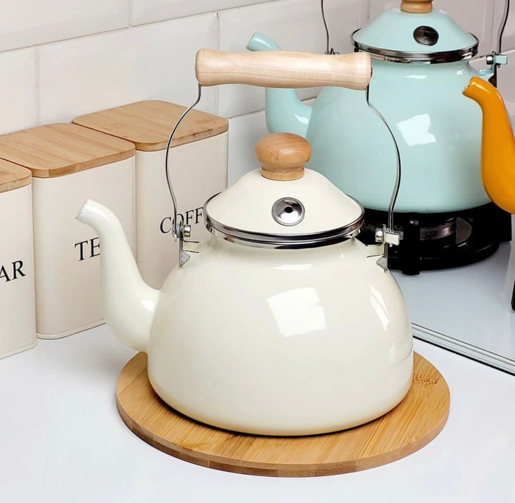 کتری لعابی طرح انگلیش هوم سفید ۲/۵ لیتری سوتی