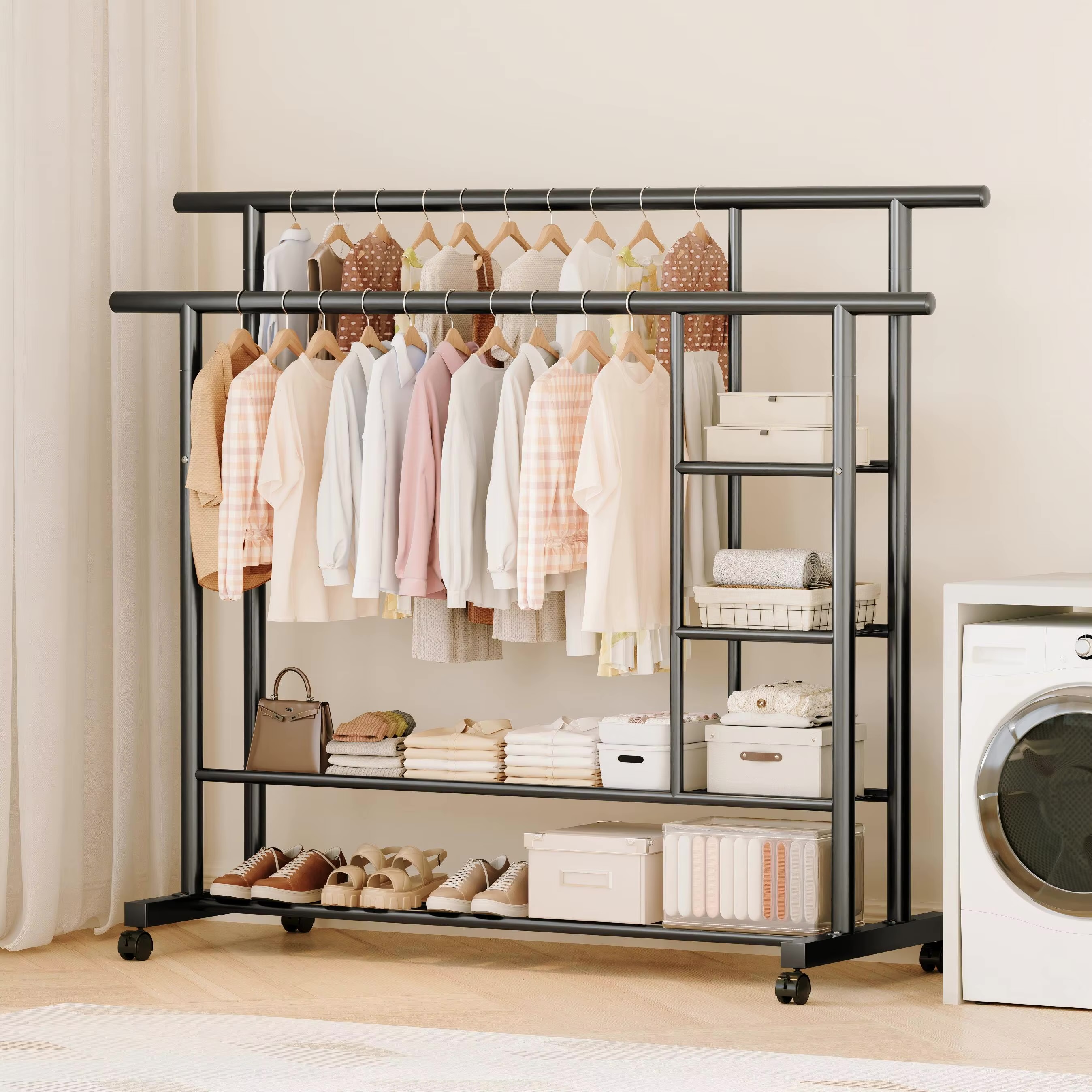 رگال لباس چرخدار دو طبقه مدل JL-8738 یک انتخاب عالی برای نظمدهی لباسها در منزل، مزون، فروشگاه و اتاق خواب است.